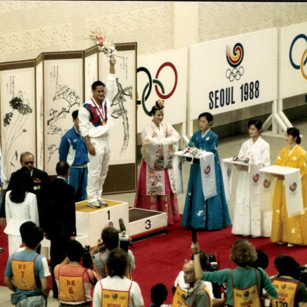 Greg competing in the Seoul Olympics, 1988.