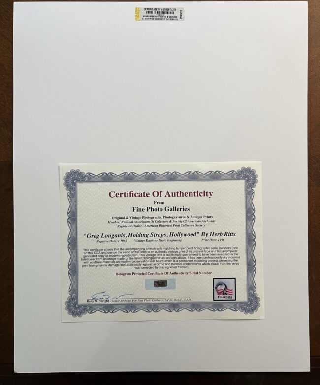 This ICONIC photo of Greg was taken by famed and multi-talented photographer Herb Ritts. Herb had taken a series of photo’s of Greg, with some of them becoming quite well known, including one image being featured at the Getty Museum in Herb’s honor. This photo will be autographed by Greg and personalized at your request. This is a professional print of the original.