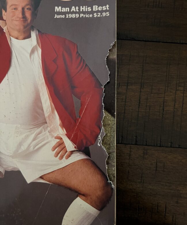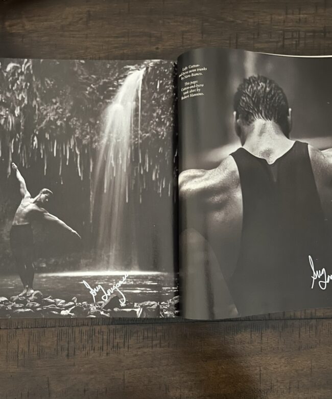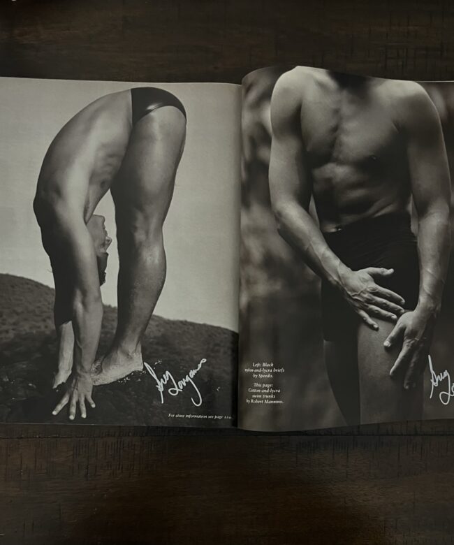 This is a RARE copy of Esquire Magazine from June 1989. Greg has a beautiful photo spread in this issue, taken by the late Kurt Markus. Kurt is known for his stunning photography, especially black and white images where his use of light is just breathtaking. Greg has signed every image of himself inside the magazine. You could carefully remove and frame each one or leave the magazine in tact and preserve it as the interesting visual piece of Greg’s history that it is. Note there is a significant tear to the front cover, right side, as shown in images.