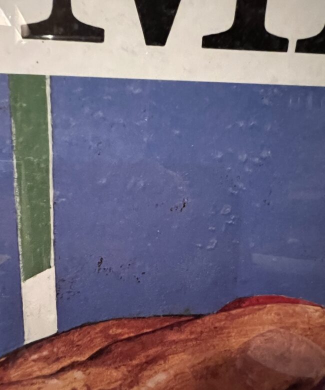 Offered here is a poster promoting the Momentum Ad campaign for Mercantile Bank. The ad won a Clio award and this was Greg’s first professional ad appearance. This poster is behind plexiglass in a 24″x30″ frame. Note there is some bubbling along the edge which is pictured here. See the video below and hear Greg talk about this.