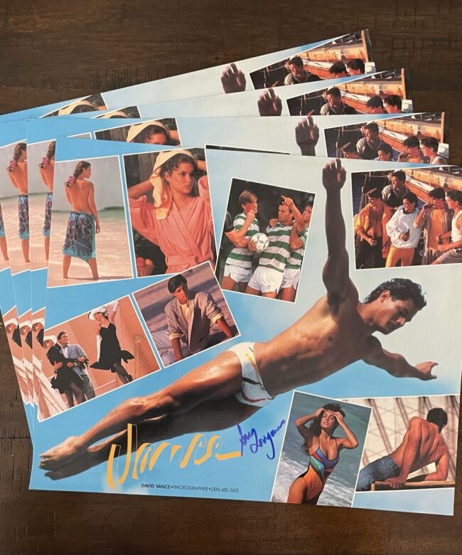 Autographed by Greg and ready to frame! This print ad for renowned advertising and marketing photographer, David Vance, features Greg – front and center. David had taken some beautiful shots of Greg during his diving career, and one of them is the focus here. Only a few pieces left!